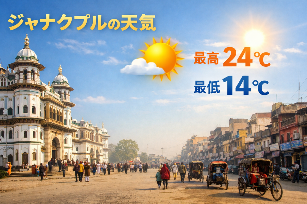 今日(2025年12月28日)のジャナクプルの天気は、全体として晴れから薄曇りで、雨の心配はほとんどありません。朝は放射冷却の影響でやや冷え込み、霧や靄が出ることがありますが、日中は次第に晴れて日差しが届く見込みです。最高気温は23〜24度くらいまで上がり、日中は半袖でも動ける程度の暖かさにな […] -