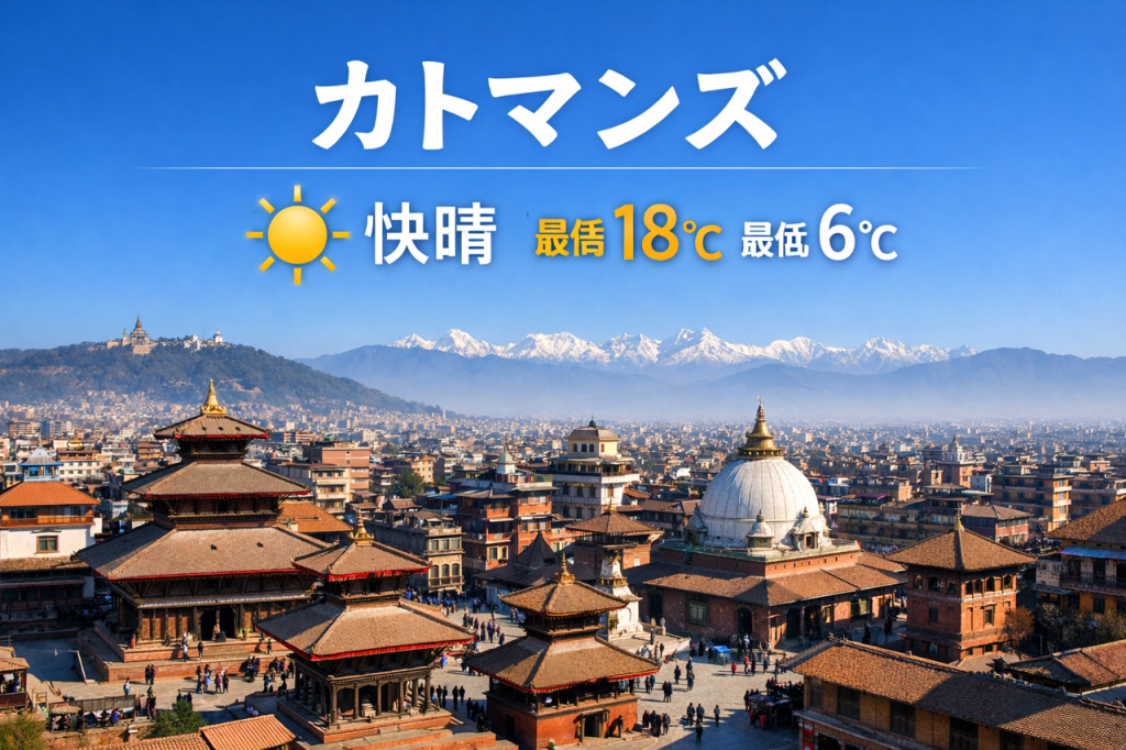 今日のバクタプルは、概ね晴れて穏やかな天気になる見込みです。日中は薄い雲がかかる時間帯もありますが、雨の心配はほとんどありません。気温は昼間で15〜18度前後まで上がり、朝晩は冷え込んで7〜8度前後まで下がります。風は弱く、日差しがある時間帯は比較的過ごしやすいものの、日陰や朝夕は肌寒く感じら […] -