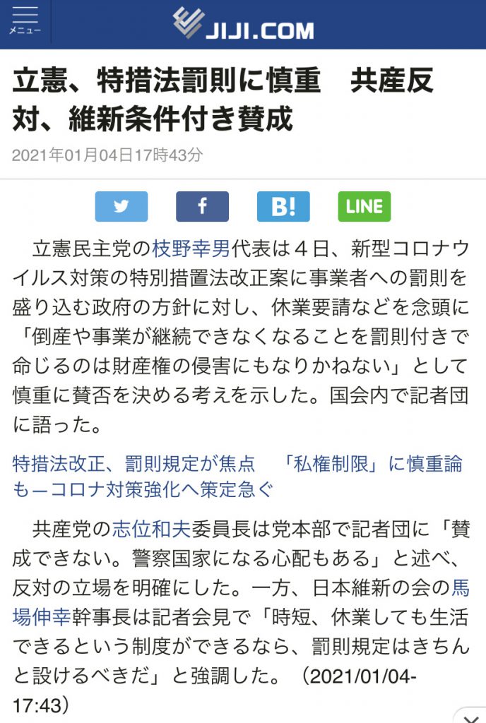 国民が緊急事態宣言でさらなる経済難が予想されようとしている時、「国会議員の会食は4名以内」というルールを定めようとしているのだという。