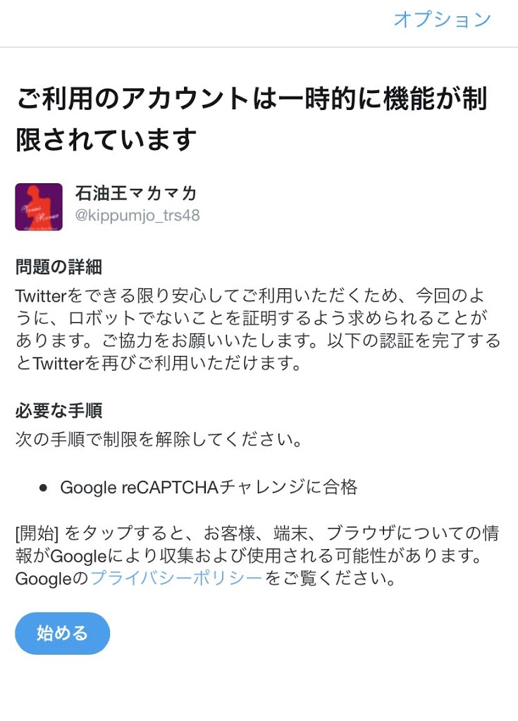 すわ凍結?と思ったがボットではないことを確認すればすぐにロックは解けた。