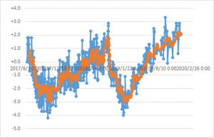体重は+2.0kg(前回比-0.9kg)、10回平均で+2.1kg(前回比-0.0kg)となった。