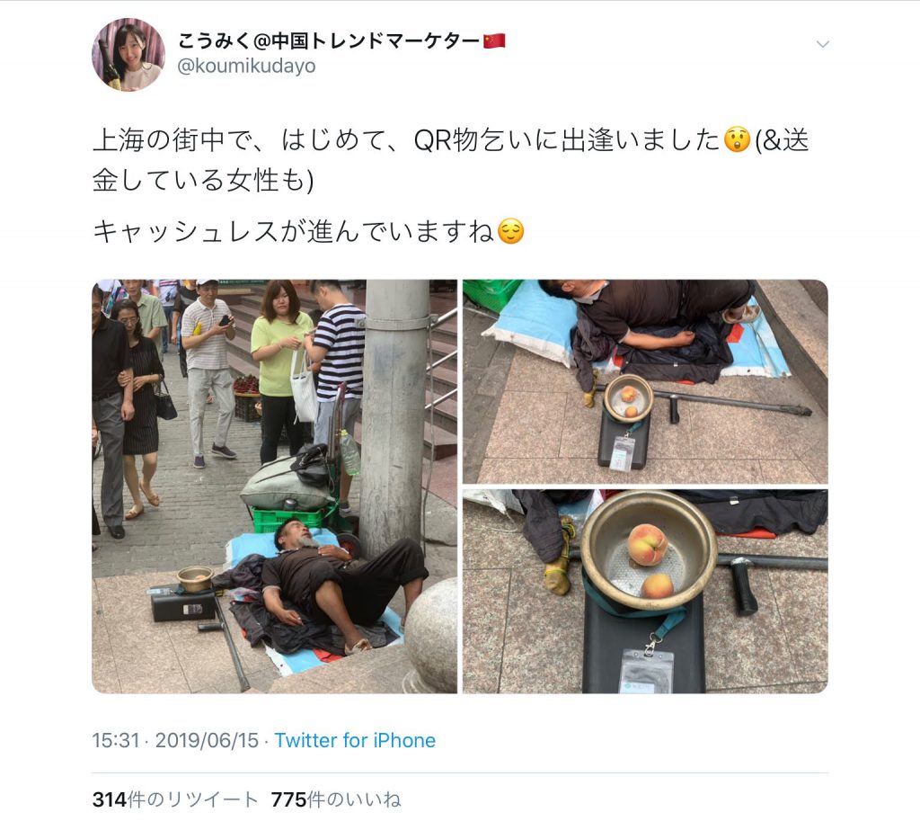 中国では物乞いまでがQRコード決済するほど一般的になっているという。