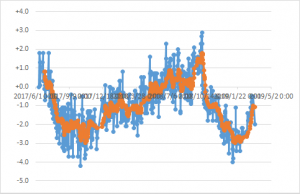体重は-0.9kg(前日比-0.1kg)で、10回平均は-1.2kg(前日比+0.1kg)と、10回平均ベースでは減る所を知らない。