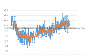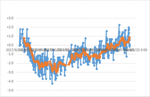 運動こそしていないものの、急激な体重の増加は抑えられており、前月平均は割り込んでいる状態。