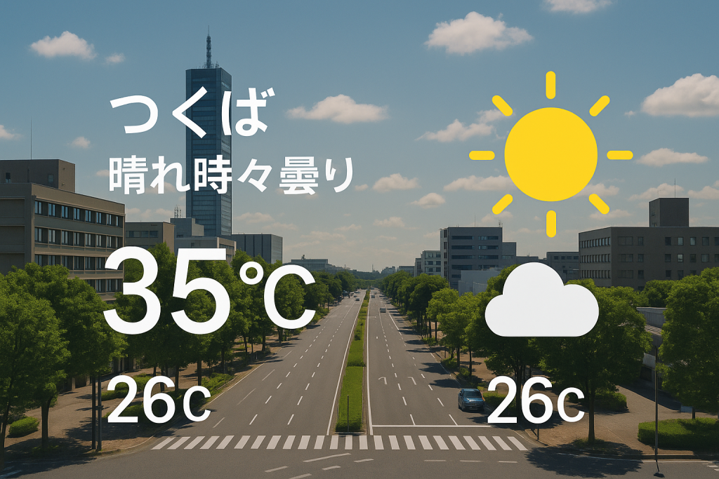 2025年9月17日のつくば市は、おおむね晴れの天気です。朝は時々曇りで、気温は26度前後から始まり徐々に上がります。昼にかけては晴れ間が広がり、気温は32度から35度と厳しい暑さになる見込みです。午後は晴れ時々曇りで、夕方には31度前後まで少し落ち着きます。夜は曇りがちで、気温は27度から2 […]