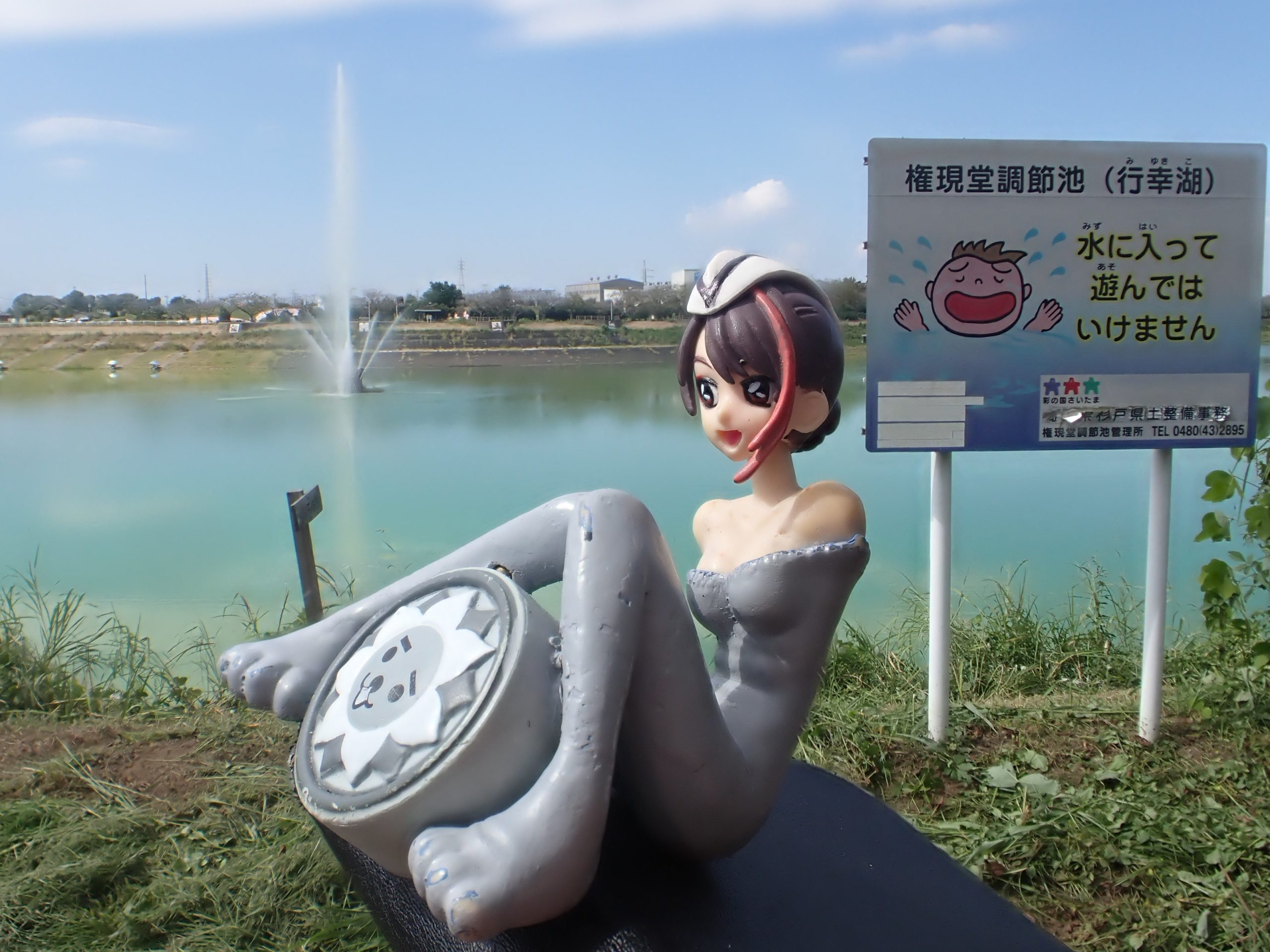 そして、排水機場の方を渡ると行幸湖と言う人工の湖に出る。こここそが茨城県との県境である。