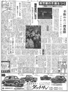 昭和32年11月4日付の神奈川新聞は、磯子区の運転手殺害事件における初動捜査の遅れを筆頭に、神奈川県警の相次ぐ不備を厳しく指弾しています。