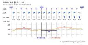2025年10月25日の東京は、一日を通しておおむね曇りの天気となる見込みです。朝のうちはにわか雨の可能性があり、8時から9時ごろにかけては短い時間ですが雨が降るところもあるでしょう。その後は雲が広がるものの大きな崩れはなく、午前10時から午後3時ごろにかけては落ち着いた空模様が続きそうです。ただ、夕方の16時以降は再びにわか雨が予想され、夜は再び曇り空に戻る見込みです。気温は朝が14〜15度前後、昼は16度くらいまで上がりますが、夕方以降は再び14度前後まで下がります。肌寒く感じる時間帯もあるため、外出時は軽めの上着や折りたたみ傘を持っておくと安心です。