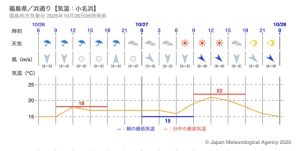 今日の福島県浜通りは朝から小雨が降り、気温は9度前後と冷え込んでいます。午前中は雨が続き、昼前にかけては12〜13度ほどまで上がりますが、体感はひんやりとしたままです。午後になると次第に雨は止んで曇り空が広がり、夕方から夜にかけてはおおむね曇りの見込みです。夜遅くには再び一時的に雨がぱらつく可能性がありそうです。全体として肌寒い一日で、外出の際は暖かい服装と折りたたみ傘を持っておくと安心です。