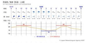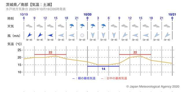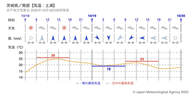 今日はつくばでは朝はよく晴れて、気温は17度前後から穏やかに上がっていきます。昼には雲が広がりはじめ、午後は曇りがちの空になりますが、雨の心配はほとんどありません。最高気温は26度くらいで、日中は少し蒸し暑さを感じるでしょう。夕方以降は雲が多いまま夜を迎え、気温は22度前後まで下がります。濃い霧が朝のうちは残る見込みなので、車の運転などには注意が必要です。