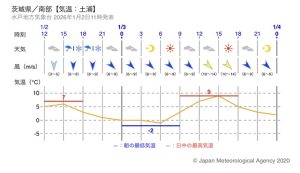 関東は朝のうちは晴れ〜曇りの地域が多いですが、上空に強い寒気が流れ込むため昼頃から雲が広がりやすくなります。午後から夕方にかけては雪雲が発達してにわか雪や雪混じりの雨になる可能性が高く、東京23区を含め平野部でも雪が降りやすく、場所によってはうっすら積もることがあります。夜にかけては路面が凍結しやすいため、歩行や運転の際は注意が必要です。気温は日中もあまり上がらず寒い状態が続きます。最新の気象情報を確認しながら外出してください。
